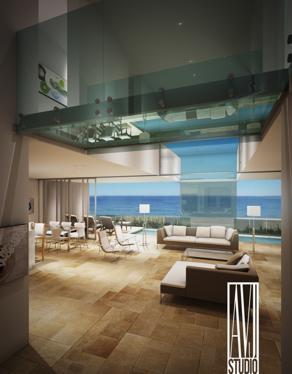 The images below showcases the exterior and interior of a recent beach house production. The exterior and interior illustrations were produced at the same time within the same workflow. This production started from CAD drawings and was completed within 3 days. Specific designer furniture were used from the Dedon and BebItalia collection.