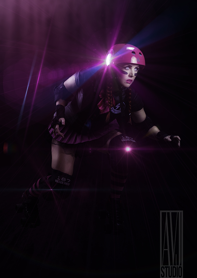 Recently AvJstudio got the privilege to shoot the Home Season head-shots for the Cmax Roller Derby league. The brief was to shoot each girl in such a manner for deep etching in post for the Home Season flyers. The girls brought their game faces and in one 2hour session we were able to capture attitude.