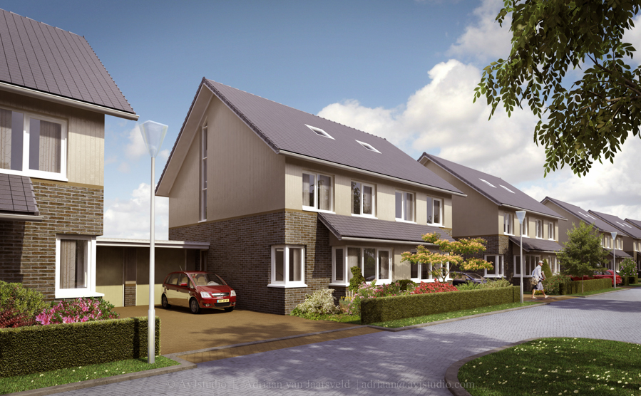 Created when I were working for a company in Holland, these Architectural visualization images depicts the typical dutch residential designs of face-brick and brick roads with clean crisp landscaping designs. The the dutch architecture design here are “Twee onder een kap” (Semi-detached) and “Rijtjeshuis”(Terraced/Town houses)